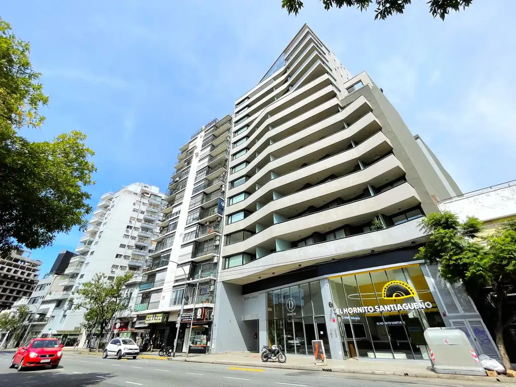Esta unidad consta de un ingreso a traves de un palier común, con disposición al frente, lo que le da principalmente sol directo desde la mañana hasta primera tarde, gracias a su orientación hacia el este y una vista hacia Palermo y la Avenida Cordoba. Living comedor de funcionales medidas, con salida a balcon aterrazado, excelente luminosidad, toilette de recepción. Cuenta con un dormitorio, placard piso techo de dos hojas y acceso a traves de su ventanal al balcon. Baño completo . Posee cocina integrada, con barra desayunadora, artefacto de cocina y anafes electricos marca Candy; espacio para lavarropas o lavavajillas y buen espacio de guardado en alacenas y bajomesadas. Agua caliente central y calefacción individual a traves de A-A F/C (esta hecha la preinstalación). Los pisos son de vinílico símil madera. COCHERA FIJA Y CUBIERTA EN SS.
