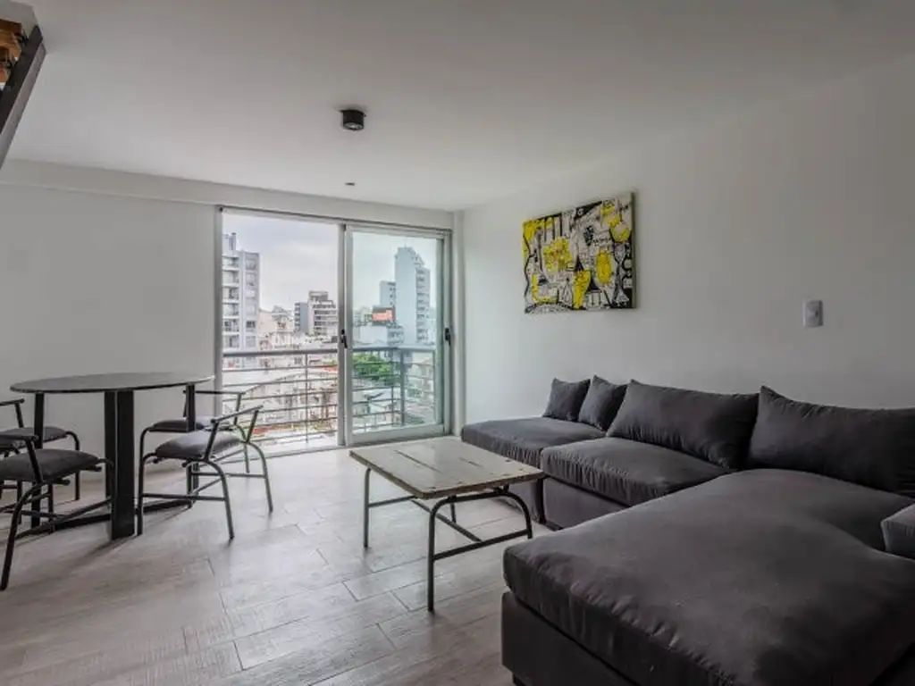 Contrafrente. Balcón. Muy Luminoso. Oportunidad de inversión en Palermo. Consultar financiación. Departamento de dos ambientes con balcón ubicado en el séptimo piso. En planta baja: Ingreso al living con salida al balcón. Cocina integrada. Baño completo. En planta alta: Dormitorio. Aire acondicionado split frío calor. Amenities: laundry en el mismo piso. Información adicional: Edificio de 7 pisos. Un ascensor. Elevador para personas con movilidad reducida. Cerradura electrónica. Agua caliente central por caldera. Edificio todo eléctrico. Encargado sin vivienda. La propiedad está ubicada a una cuadra de Av. Córdoba, a tres de Av Medrano y a dos cuadras del Sanatorio Güemes, con variedad de transportes y ágiles accesos en el corazón Palermo. Expensas: $ 70.000 Accesible: SI (Ley 5.115).