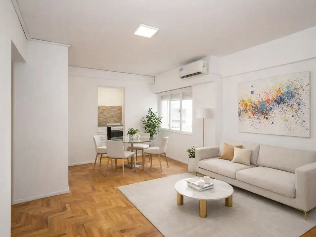 La distribución es funcional y cómoda: living comedor, cocina separada con gas natural y calefón, baño completo con bañera renovado, dormitorio con placard empotrado, placard adicional en antebaño y aire acondicionado frío/calor para resolver el confort durante todo el año.