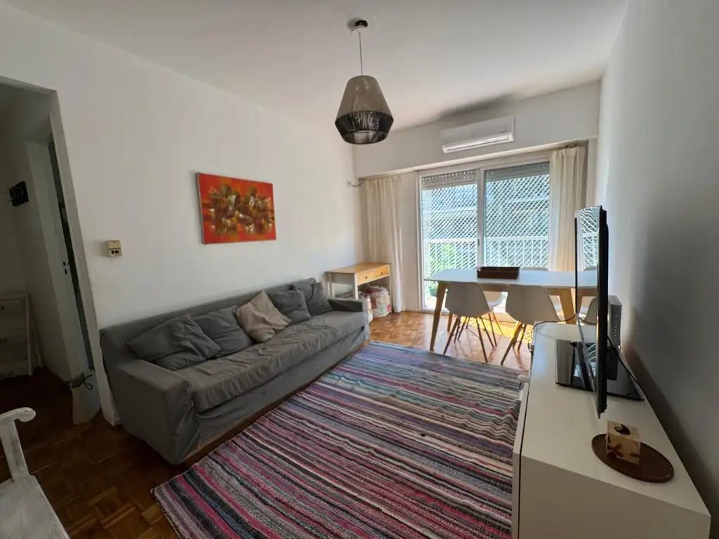 Cuenta con un living comedor amplio, con salida al balcón, buena circulación y ventanal actualizado que aporta luz natural. Dispone de dos dormitorios bien proporcionados, baño completo, y cocina hecha a nueva con lavadero integrado y espacio para lavarropas, logrando un conjunto funcional y bien aprovechado. Posee aire acondicionado frío/calor en el living y en la segunda habitación, agua caliente por calefón y persianas en todos los ambientes. Los pisos de parquet se encuentran en muy buen estado.