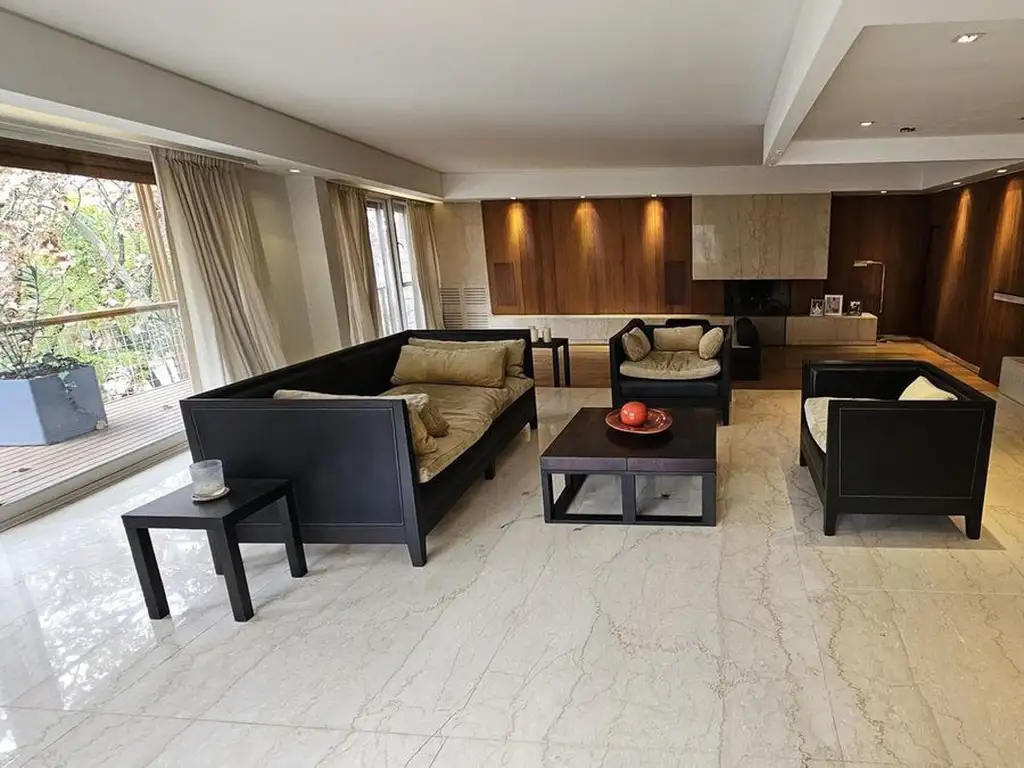 - Ambientes Amplios y Luminosos: El interior destaca por sus pisos de mármol, paredes revestidas en roble y grandes ventanales que permiten una excelente entrada de luz natural, creando un ambiente cálido y sofisticado.