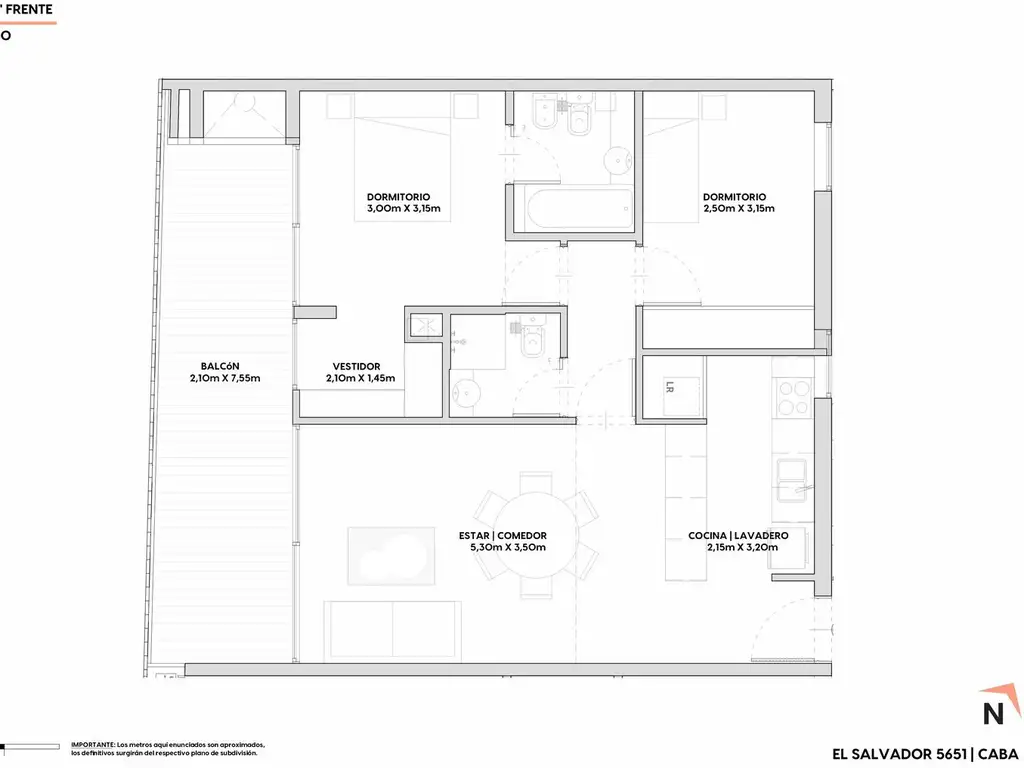 Amplio y luminoso living comedor. Balcón terraza de 17,51 m2, corrido al frente con parrilla. Cocina americana con lavadero, muebles completos, mesada de Silestone o similar y, horno y anafe Samsung o similar. Hall de distribución. Dormitorio principal con baño en suite, vestidor y salida a balcón. Segundo dormitorio con placard, vista al pulmón. Incluye cochera, baulera y dos bicicleteros. Cerradura electromagnética. Agua caliente central. Equipos de aire acondicionado multisplit BGH o similar. Calefacción por piso radiante. Pisos de porcelanato.