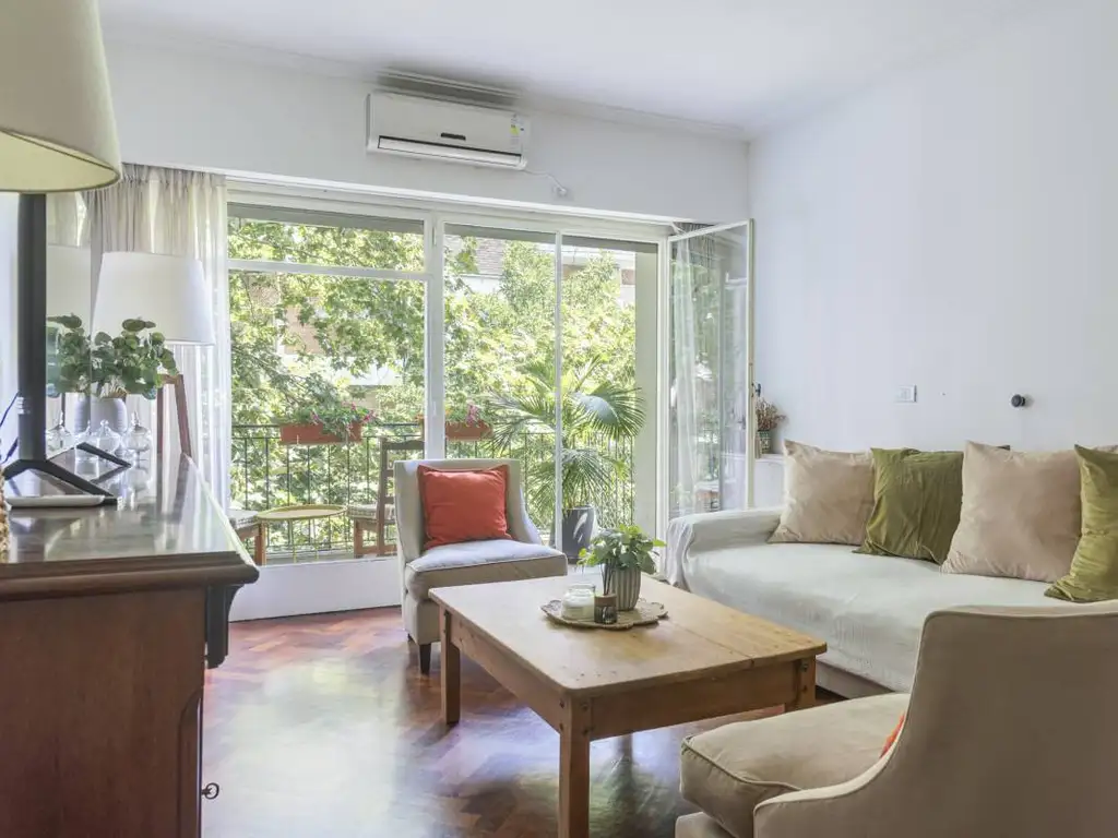 Semi-piso al frente en venta en Palermo Soho, en zona arbolada, muy luminoso. Son 93,43 m2. Hall de entrada, living-comedor a balcón y escritorio. Toilette. Dos dormitorios. Principal al frente y segundo dormitorio a pulmón, también luminoso. Baño completo con ventilación y luz natural. Cocina reciclada. Lavadero. Hay 3 aire acondicionados frío-calor. Calefacción central por radiadores. Agua central por caldera.