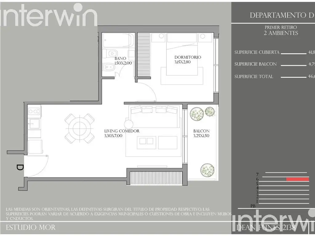 Todas las imágenes, planos, descripciones, y características indicadas son meramente referenciales e ilustrativas y podrán ser modificadas sin previo aviso. Las superficies indicadas son estimadas. Las superficies y medidas definitivas surgirán del plano de mensura final aprobado oportunamente por el GCBA. Las fechas de inicio de obra o posesión son estimadas, podrán ser reprogramadas por la Dirección de obra y dependerán a su vez de un proceso de aprobaciones municipales u otros organismos intervinientes. Los precios indicados podrán modificarse sin previo aviso. El interesado deberá realizar las verificaciones respectivas previamente a la realización de cualquier operación, requiriendo por sí o sus profesionales las copias necesarias de la documentación que corresponda.