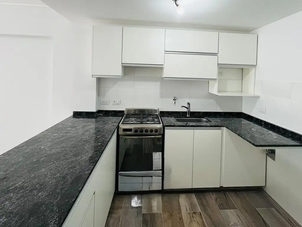 - Cocina cuenta con: Alacenas y bajo mesada revestidas en melamina de color blanco, grifería Hansgrobe, mesadas de granito, Horno acero inoxidable con parrilla encendido eléctrico.