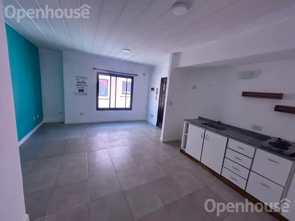 Luminoso living comedor con cocina intefrada.