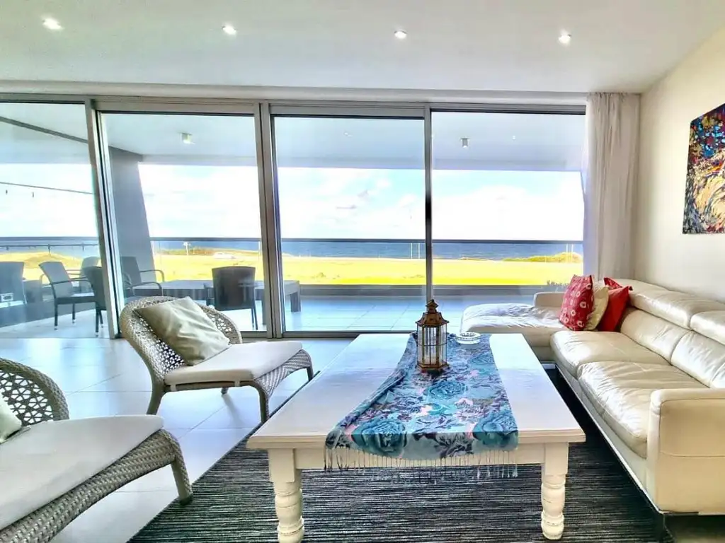 Espectacular planta con vista directa al mar. Grandes terrazas. Living comedor, toilette de recepción. 4 suites, principal al frente con vista al mar. Cocina muy amplia, terraza con parrillero. Dependencia de servicio. Lavadero. Dos garajes. Baulera.