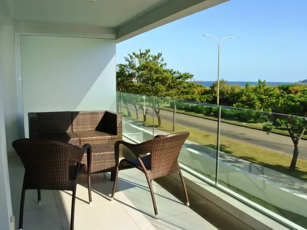 Unidad central en edificio con muy buenos amenities.Living comedor amplio y luminoso con salida a muy buena terraza con vista al mar .Toilette de recepción . Cuenta con2 dormitorios en suite (principal con vista al mar) .Cocina cómoda y práctica con salida a terraza lavadero más habitación de servicio con baño completo.