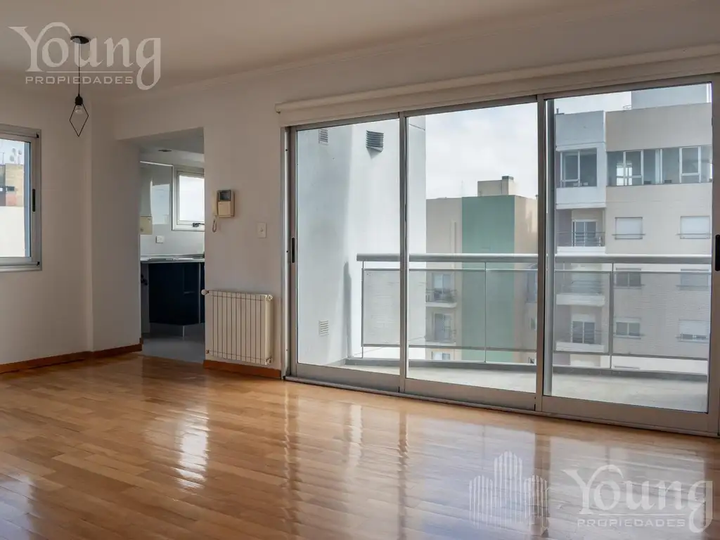 Al ingresar al piso 11, nos encontramos con un palier privado que nos conduce a los departamentos. Ingresando a la propiedad, se encuentra un amplio living comedor super luminoso, con pisos de madera y salida a balcón. La cocina cuenta con muebles altos y bajos de excelente calidad y muy luminosa. Posee baño completo con ventana y dormitorio con placar empotrado y balcón. El departamento cuenta con calefacción por radiadores. El edificio posee un subsuelo amplio con cochera con baulera; cuenta con PILETA, SECTOR DE PARRILLA Y SEGURIDAD 24 HS.