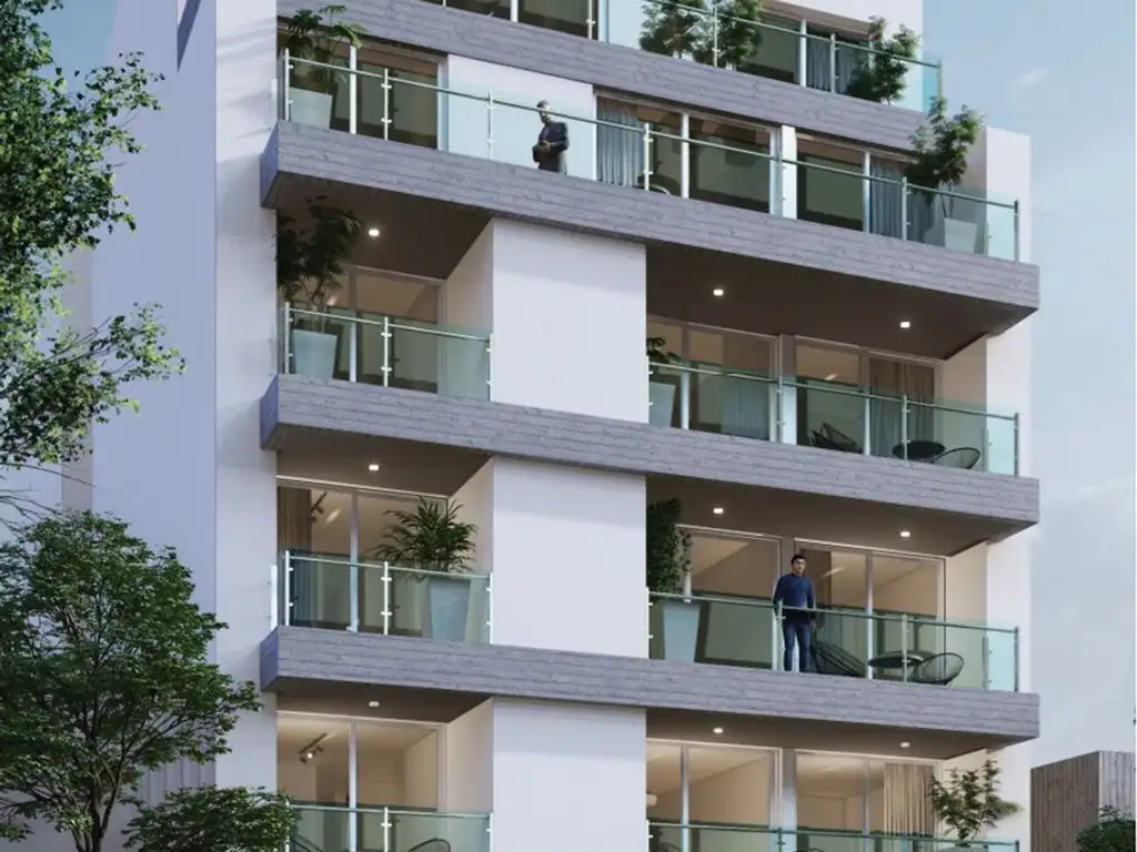 Edificio a construir compuesto por 19 departamentos de uno y dos dormitorios ,un semi-piso, un local comercial y 10 cocheras, con sitio común para home office (co working).