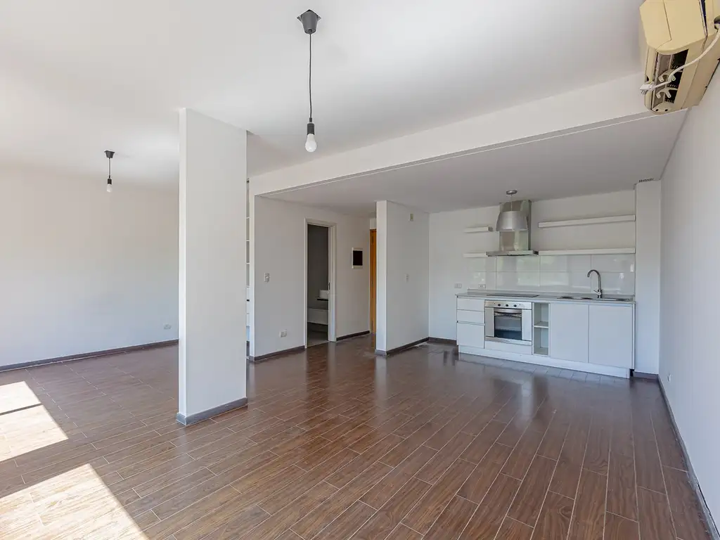 La unidad cuenta con un ambiente único de generosas dimensiones, con excelente ingreso de luz natural y una cocina integrada, cómoda y funcional, pensada para el uso diario. Dispone de placard con interiores completos, optimizando el espacio de guardado, y un baño completo de buen tamaño.
