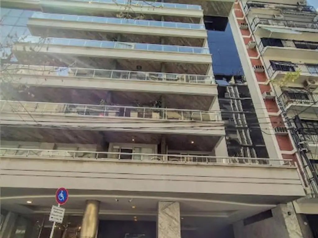 Monoambiente en un 5º piso al contrafrente, con balcón, tipo jardín de invierno, a pulmón de manzana con mucha luz y sol. Cocina integrada con barra. Baño completo. Excelente construcción.