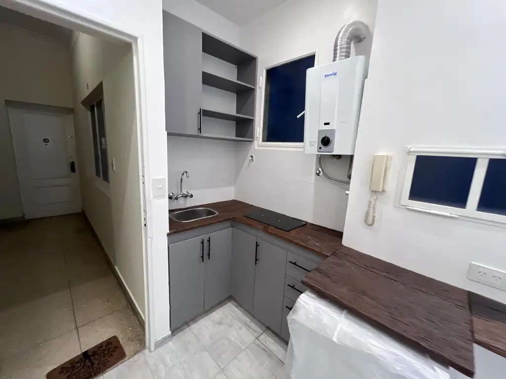 Ambiente y medio divisible con cocina separada y baño completo, ubicado en piso medio con vista a la calle.