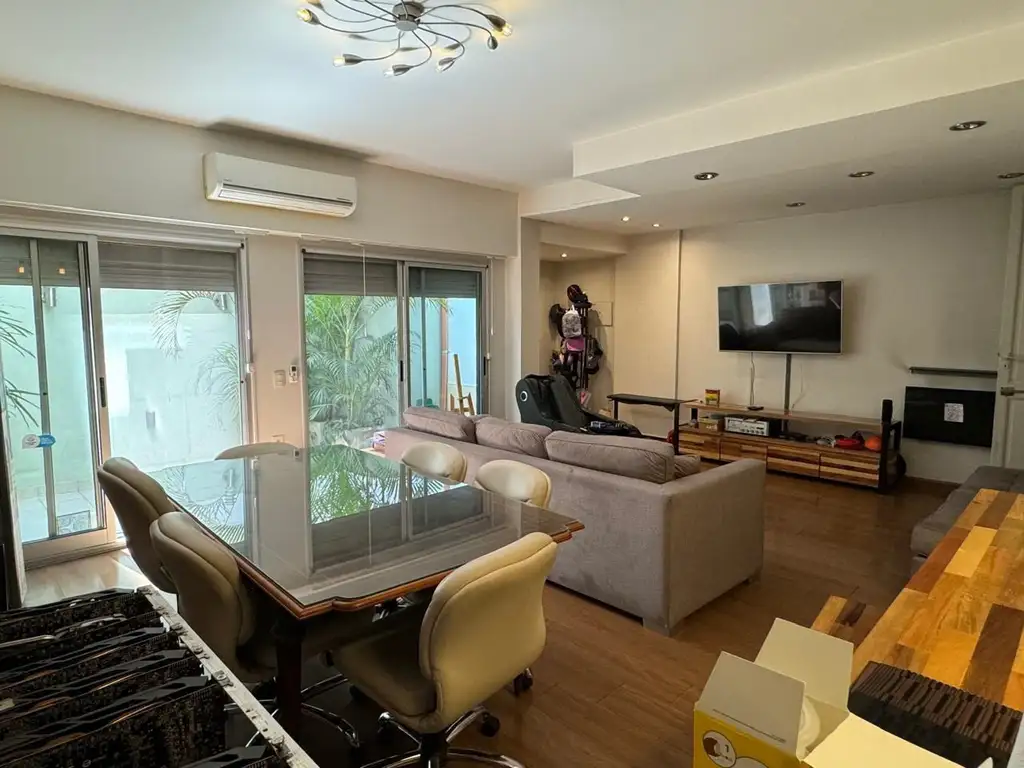 Departamento en Triplex de 170 m² totales aproximadamente, con 110 m² cubiertos aprox, distribuido en planta baja, planta alta y un increíble tercer piso que cuenta con una terraza espectacular. Este departamento destaca por su luminosidad si consideramos que es una pb, su modernidad y su maravilloso espacio exterior.
