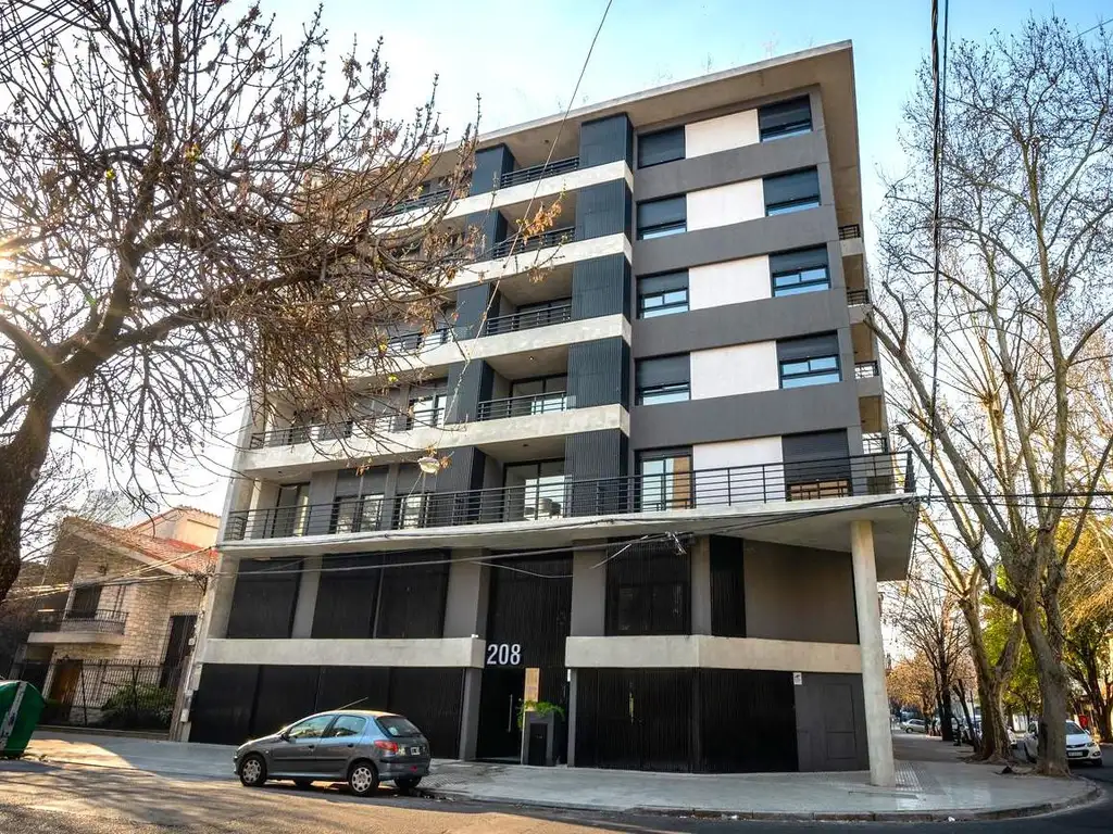 Departamento de dos dormitorios con patio exclusivo. Ingreso por un amplio hall de entrada, living comedor y cocina semi separada por una barra. Dormitorios con placar. Patio de uso exclusivo y balcón al frente. Baño completo y toilette.