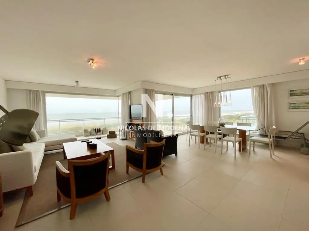 Amplio Living comedor, con balcón que da frente al mar, con parrillero propio.