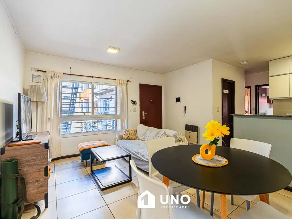 Departamento interno, ubicado en primer piso por escalera. Se compone de: estar comedor, cocina semi separada por barra, 2 dormitorios con placares y baño. Terraza con parrillero de uso común. Buen estado general.