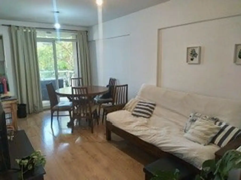 El interior del departamento te recibe con un amplio living comedor y una cocina integrada equipada para que prepares tus mejores platos. Cuenta con dos cómodos dormitorios con placares donde podrás descansar y disfrutar de dulce sueños.