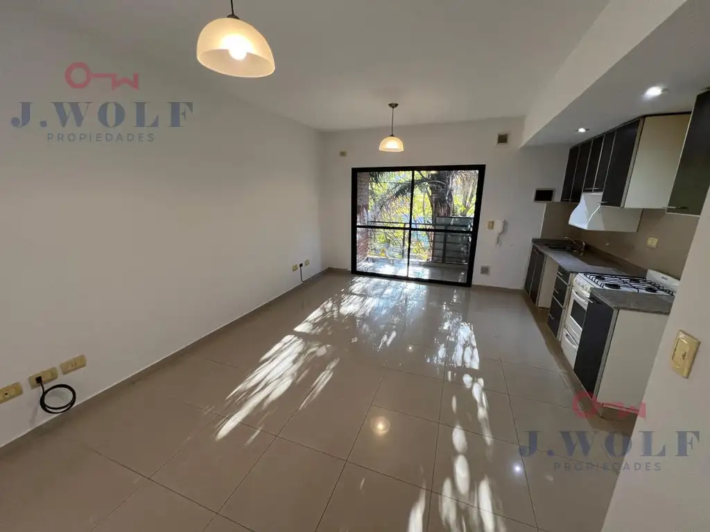 Departamento de 2 ambientes en San Andrés. Dicho inmueble consta de living comedor con cocina integrada completamente equipada con muebles en bajo y alto mesada, artefacto de cocina 4 hornallas y horno, mesada de mármol con bacha de acero inoxidable, un dormitorio con placard embutido con su interior, baño completo y balcón al frente con instalación para lavarropas.