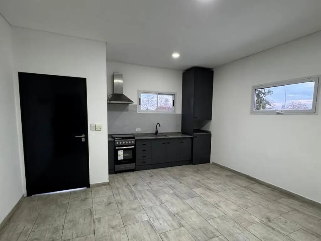Al depto se accede por pasillo lateral, escaleras a la planta alta y consta de cocina comedor diario integrados equipada con bajo mesada, horno electrico mas anafe doble, campana, espacio para conexión de lavarropas y termotanque, baño completo con ducha y dos dormitorios (principal con balcón al frente). -