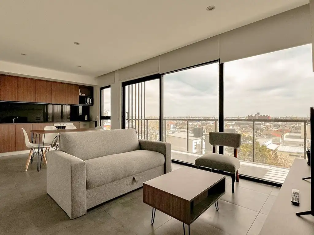 A su ingreso amplio living comedor con cocina integrada. Inmejorable diseño, con salida a un balcón corrido aterrazado de 9 m2.