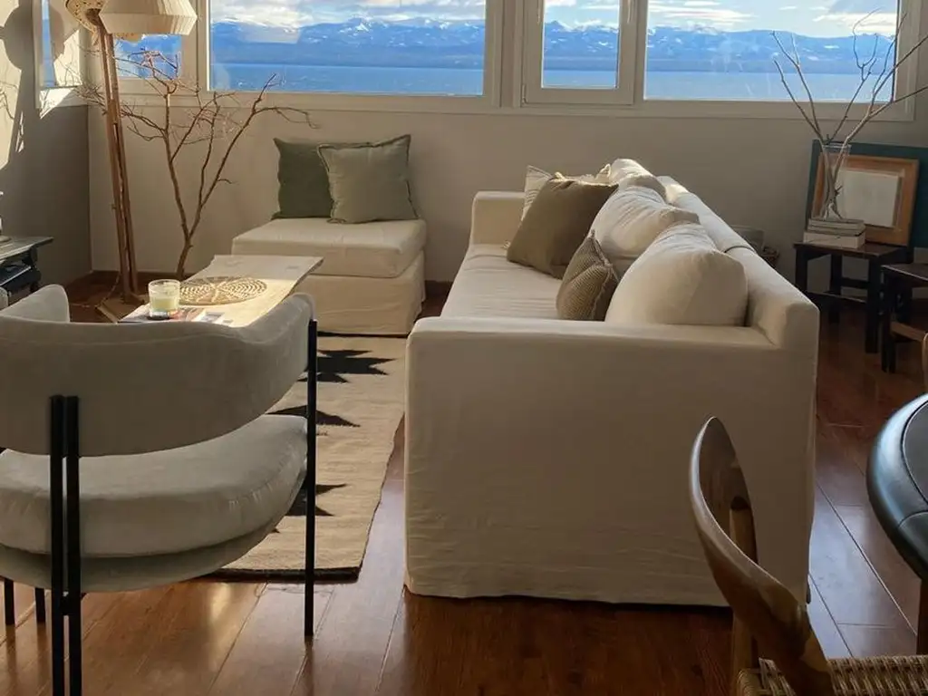 Departamento semipiso en venta ubicado sobre Avenida Mitre en pleno centro de San Carlos de Bariloche. Propiedad estratégicamente emplazada a pasos de comercios, restaurantes, servicios bancarios y educativos, con una vista privilegiada al lago Nahuel Huapi.