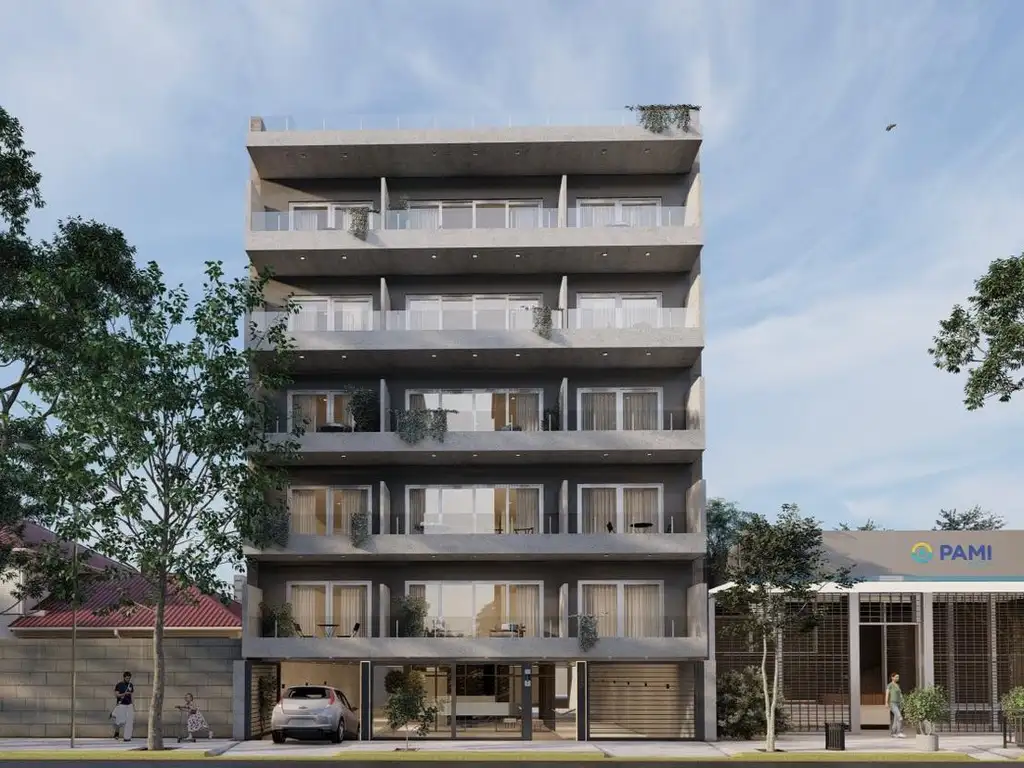 La terminaciones del edificio incluyen frente de Tarquini/Quimtex, balcones con paneles acristalados, porton automatico para cochera, ascensores con cabinas de acero y espejo.