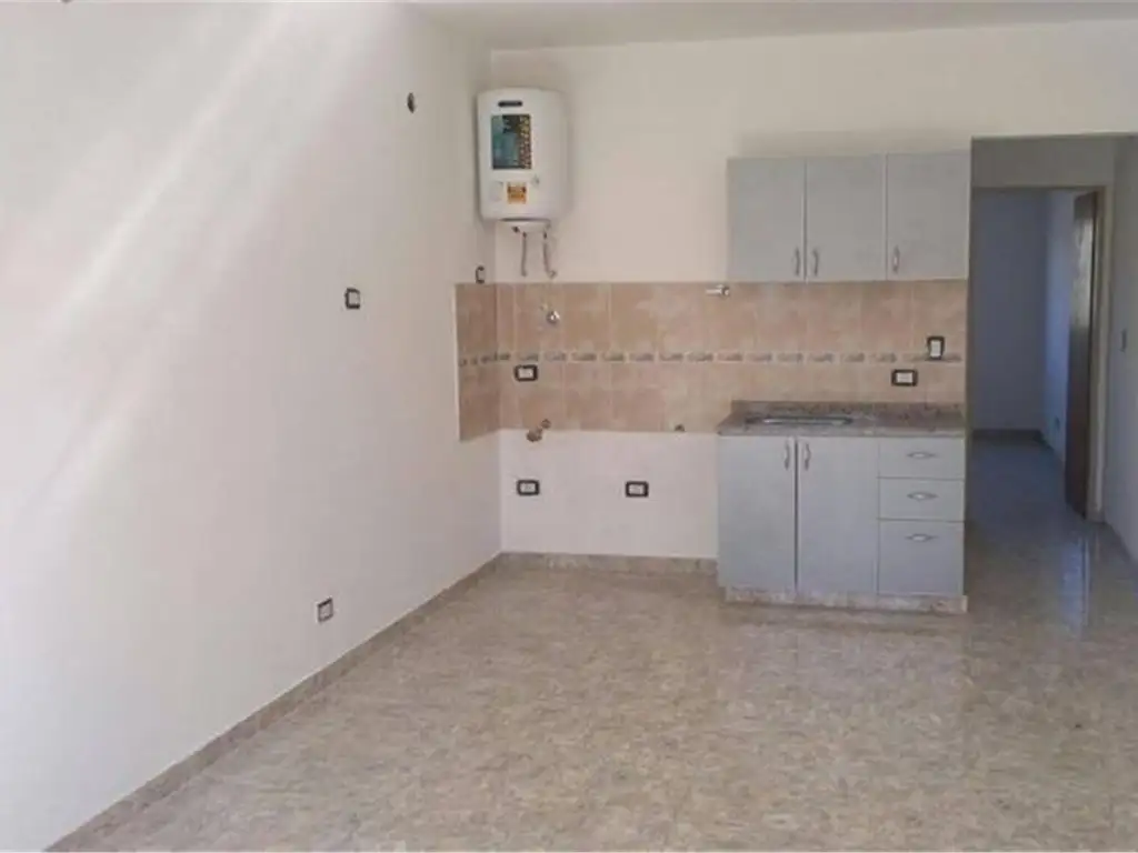 living comedor con cocina integrada con bajo mesada, alacena y termotanque eléctrico.