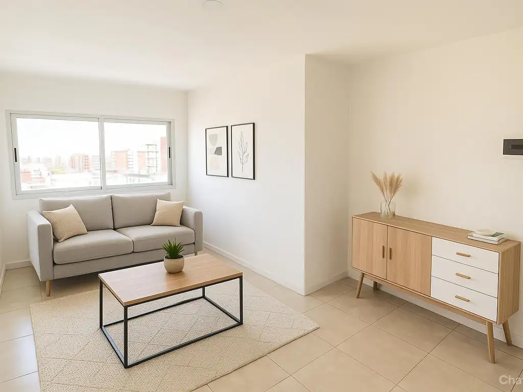 Living luminoso y bien distribuido