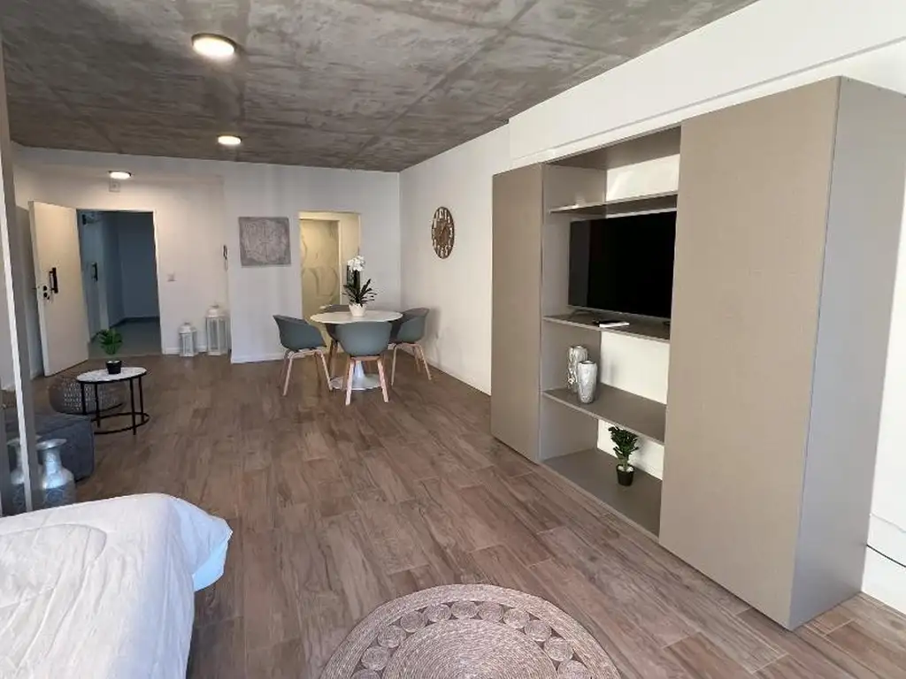 Amplio ambiente completamente amueblado. Cocina. Muy luminoso, hermoso baño