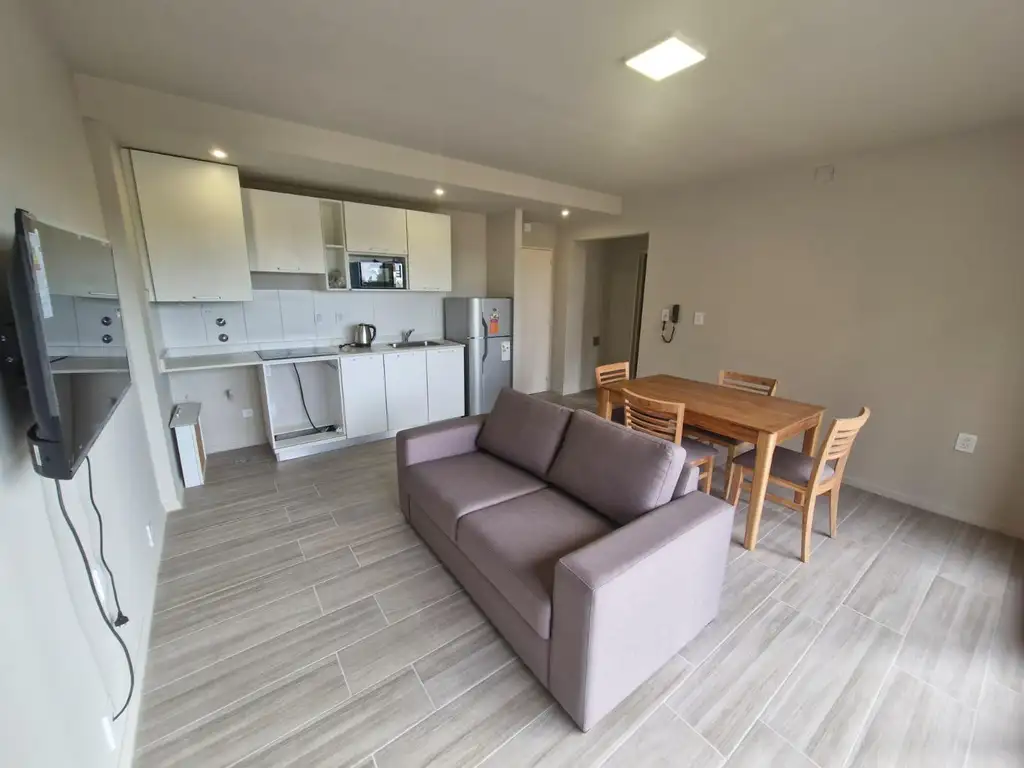 Living-comedor con cocina integrada. Un dormitorio con placard empotrado y baño completo.