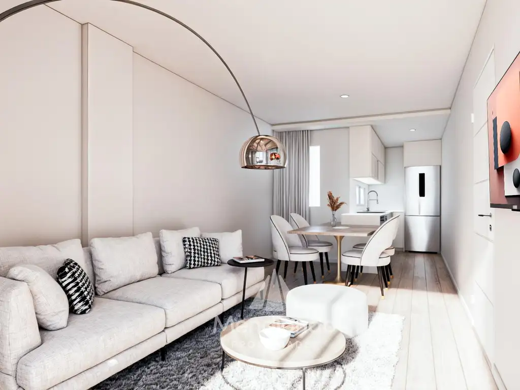 Living comedor con cocina integrada.