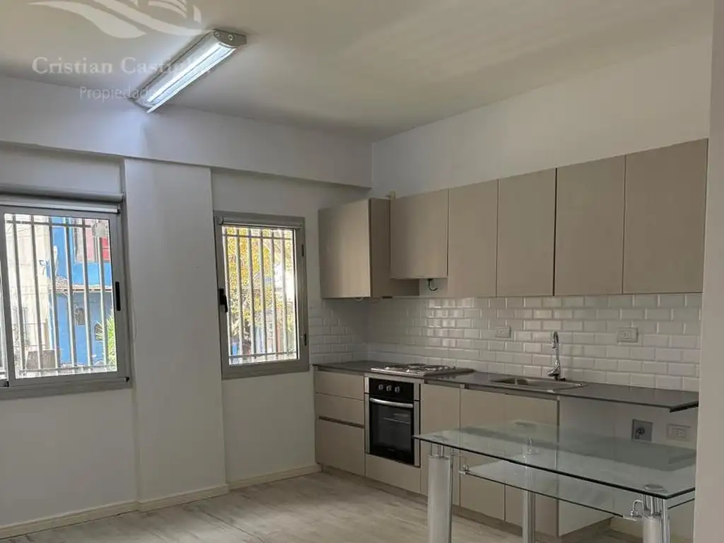-El mismo cuenta con living comedor con salida a balcón con parrilla, cocina integrada mediante barra desayunadora con muebles completos de alacena y bajo mesada en melamina, dormitorio con puertas de placard e interior completo y baño completo.