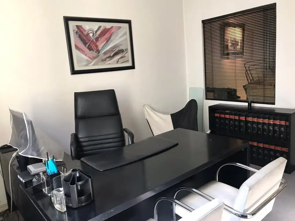 Gran recepción, 2 oficinas con ventanales al frente, sala de reuniones con ventilación al aire y luz, al igual que la cocina separada (a reconectar, hoy sala de archivos) hacia el aire y luz. Doble circulación.