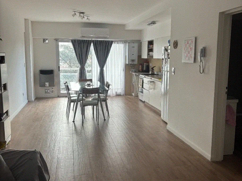 EXCELENTE DEPARTAMENTO DE DOS AMBIENTES MUY LUMINOSO, CON BALCÓN ORIENTACION NORTE, UN AÑO DE ANTIGUEDAD, PISOS DE PORCELANATO, MUEBLE BAJO MESADA Y ALACENA COMPLETO, LUGAR PARA LA HELADERA, LUGAR PARA EL LAVARROPA BAJO MESADA CON CARGA FRONTAL, DOS ESTUFAS TIRO BALANCEADO, UNA POR AMBIENTE, DOS AIRE ACONDICIONADO FRIO/CALOR TIPO SPLIT, BAÑO COMPLETO, HABITACION CON PLACARD CON INTERIORES, CON PUERTA CORREDIZA.