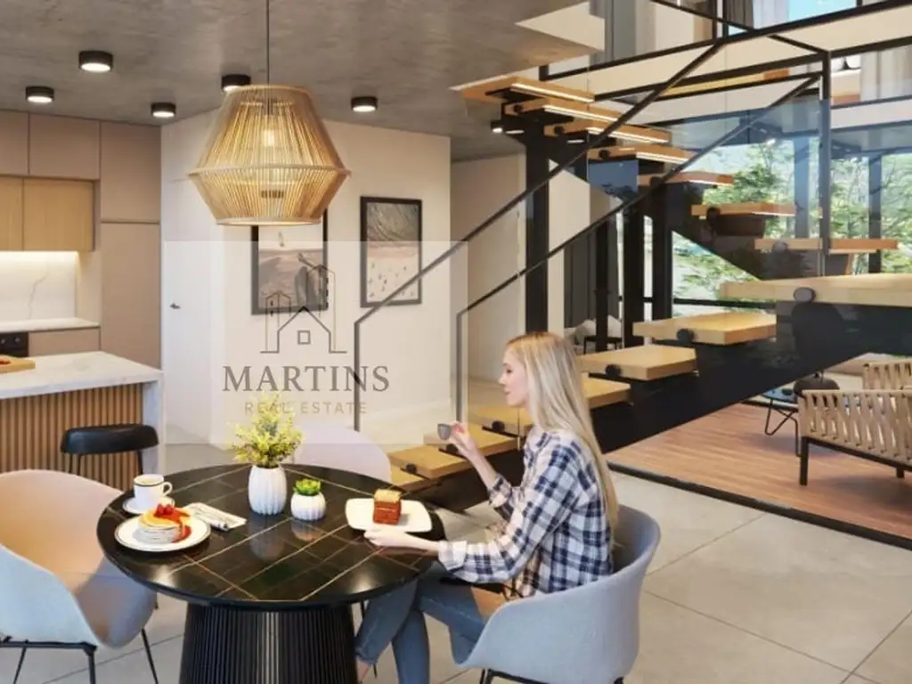 Ofrece dúplex de cuatro ambientes desde USD 920.000, todos con balcones aterrazados, espacios amplios y funcionales, y detalles de categoría que reflejan elegancia y modernidad.