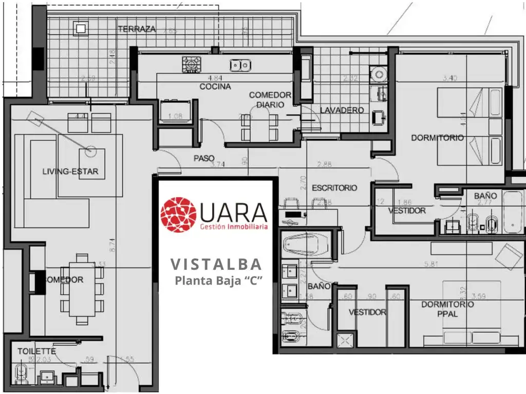 - Amplio Living y estar comedor. Salida al balcón.