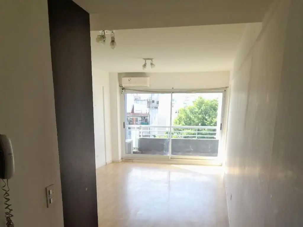 Departamento a contra frente muy abierto, a jardines. Aire acondicionado frio calor. Ambiente de 3.50 x 7.50 m. Pisos flotantes en buen estado.