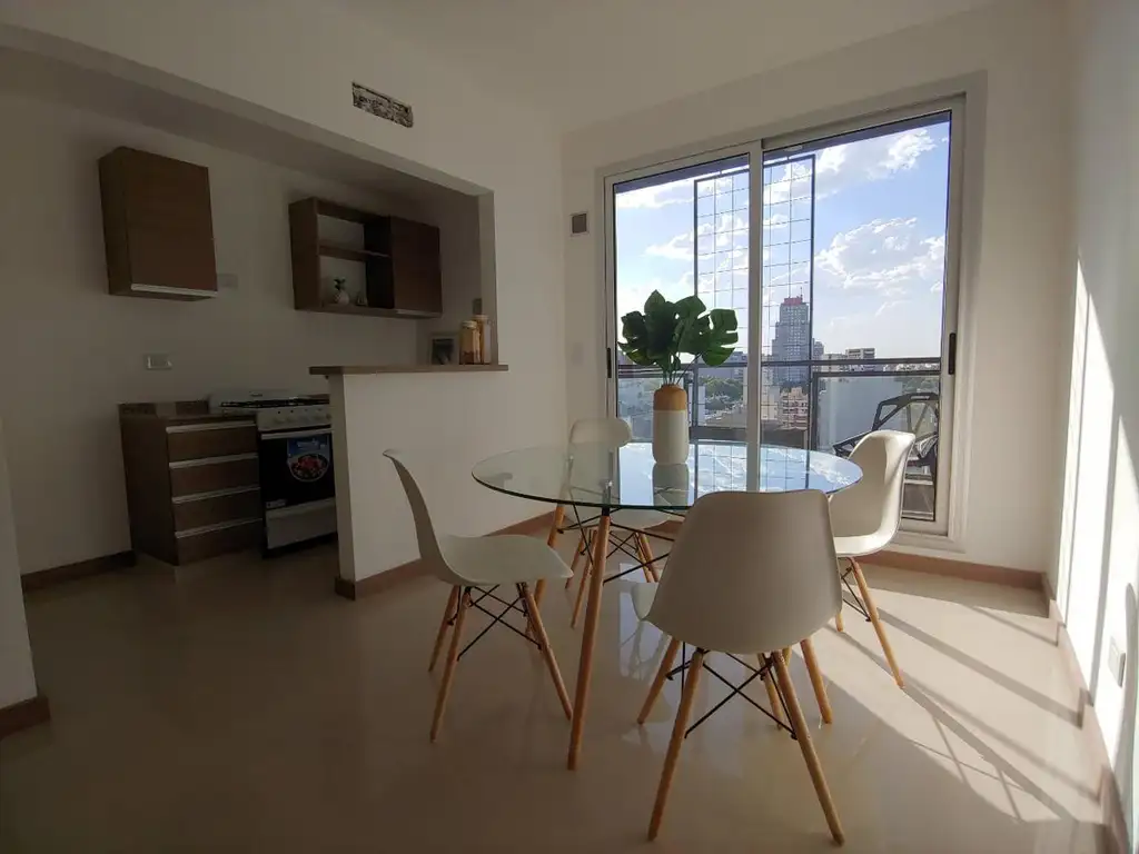 Edificio a estrenar de 13 pisos con departamentos de dos ambientes de 51 m2 totales y de un ambiente de 40 m2 con excelente terminación y equipamiento completo. En PB 7 cocheras y en piso 13 cuenta con 16 bauleras.