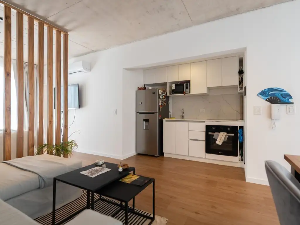 Cuenta con cocina integrada, con mobiliario de calidad, baño completo y un sector de dormitorio semi-dividido que brinda una excelente distribución del espacio.