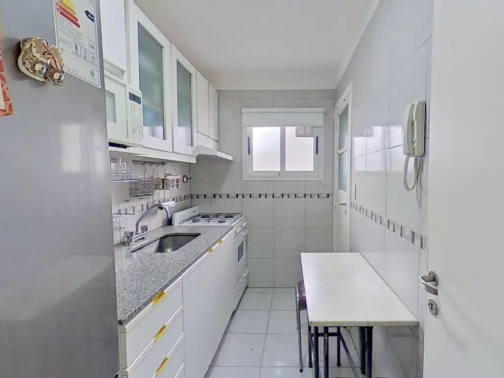 Living comedor (4,30 x 3), con pisos de porcelanato con salida al Balcón. Pasillo de distribución con placares empotrados. Cocina independiente con ventana totalmente equipada. Lavedero independiente. Domitorio (3,20 x 4,20), con placard y salida a segundo balcón. Baño hecho a nuevo.