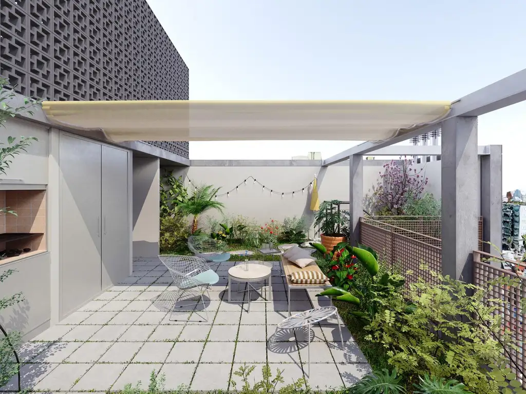 Amenities: terraza jardín con parrilla, espacio para lavarropas y bicicleteros.