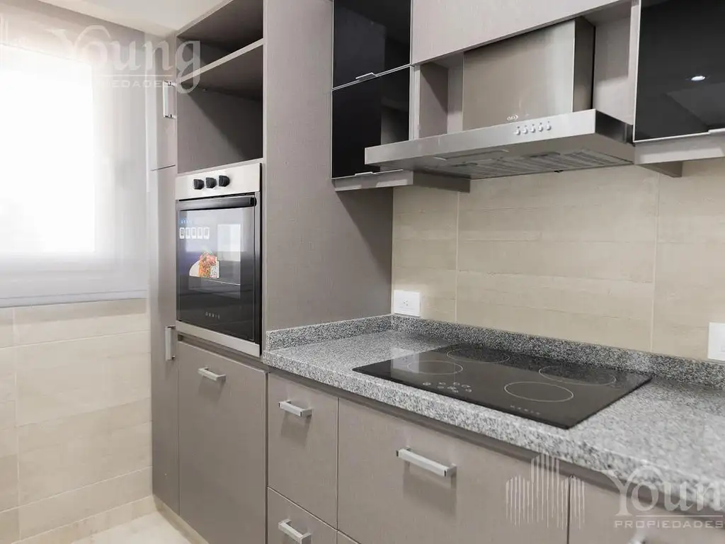 DEPARTAMENTO DE 3 AMBIENTES AL FRENTE CUENTA CON PUERTA DE ENTRADA BLINDADA, LIVING COMEDOR CON PISOS DE PORCELANATO, COCINA CON BARRA DESAYUNADORA, ANAFE ELECTRICO, HORNO ELECTRICO, MUEBLES DE CALIDAD BAJO MESADA Y ALACENA DE MELAMINA. TOILETTE REVESTIDO EN CERAMICA.