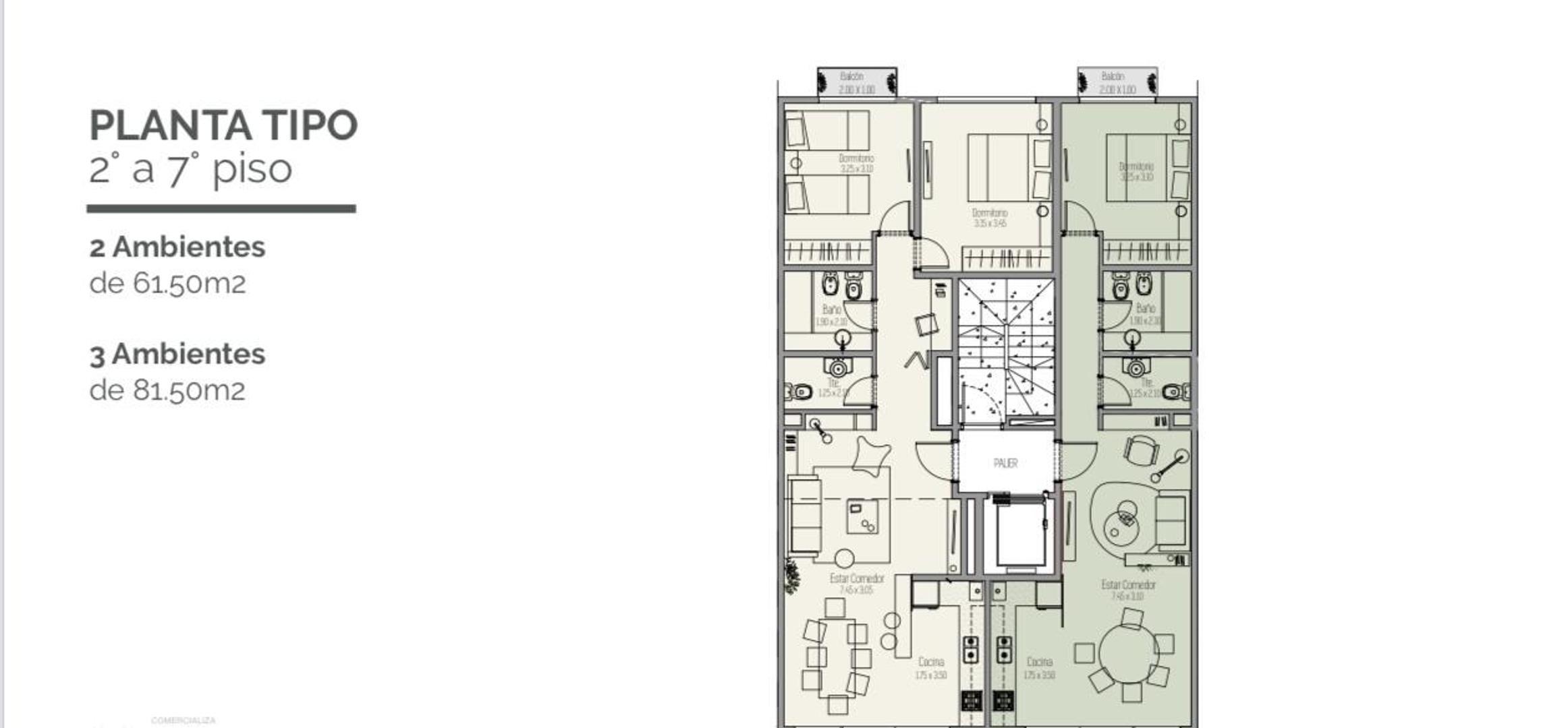 3 ambientes con un total de 81,50m