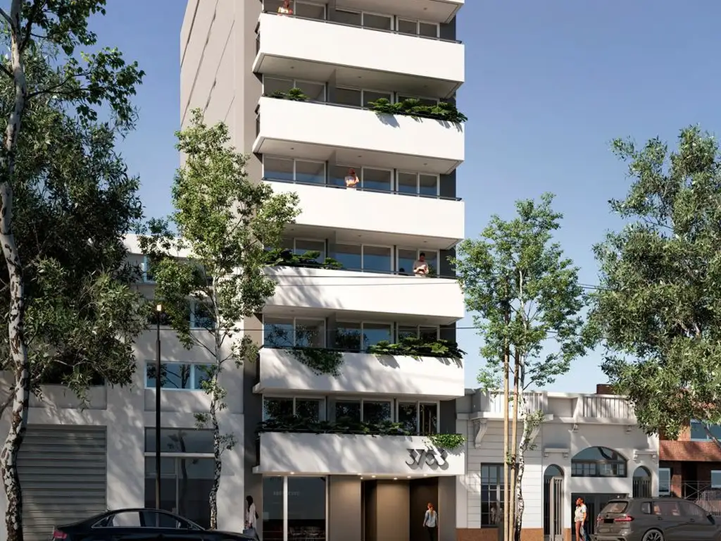 En planta baja se ubica el local comercial en el frente y un departamento de 3 ambientes con jardín, parrilla y piscina propia en el contrafrente. Por su parte, la planta tipo consiste de una unidad monoambiente y otra unidad de 2 ambientes al frente. Los departamentos de 3 ambientes se emplazan al contrafrente y poseen parrilla en el balcón.