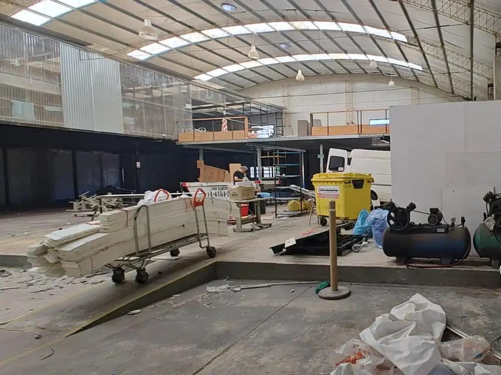 Pisos de hormigón alta resistencia , altura de parabolico 8 m en chapa de zinc y traslúcida. Entrepiso metálico. Oficinas baños y vestuarios.