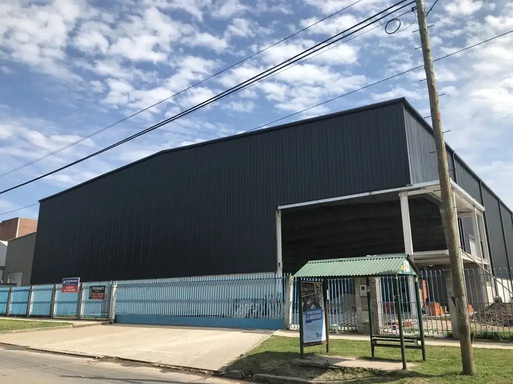 Galpon de 3105 m2 c/techo a 2 aguas, 12 mts de altura, porton amplio de ingreso al frente, 3 cortinas laterales c/motor, 1 baño, piso alto transito, luces led. Sector de oficinas administrativas c/baños, baños c/vestuarios. 347 m2