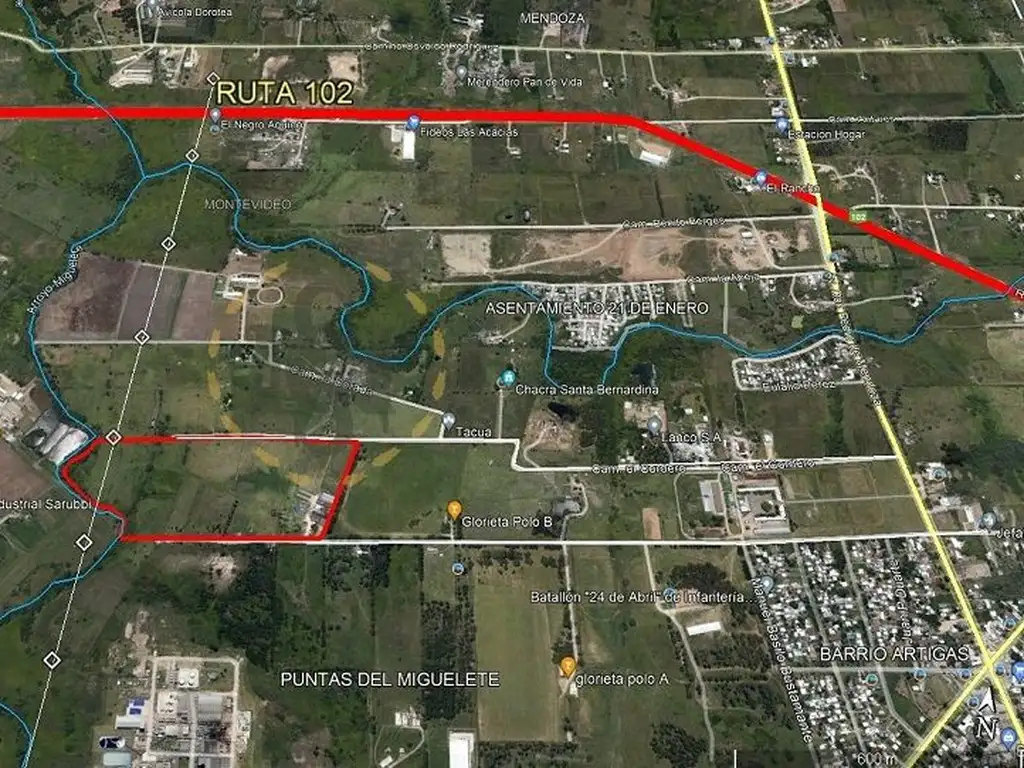 ESPECIFICACIONES IMM: Sector de suelo apto para uso no habitacional mediante trámite ante IMM. (ej usometalúrgico y envases platicos aprobados en la zona). Otro sector de suelo sobre el arroyo uso exclusivo comorural natural