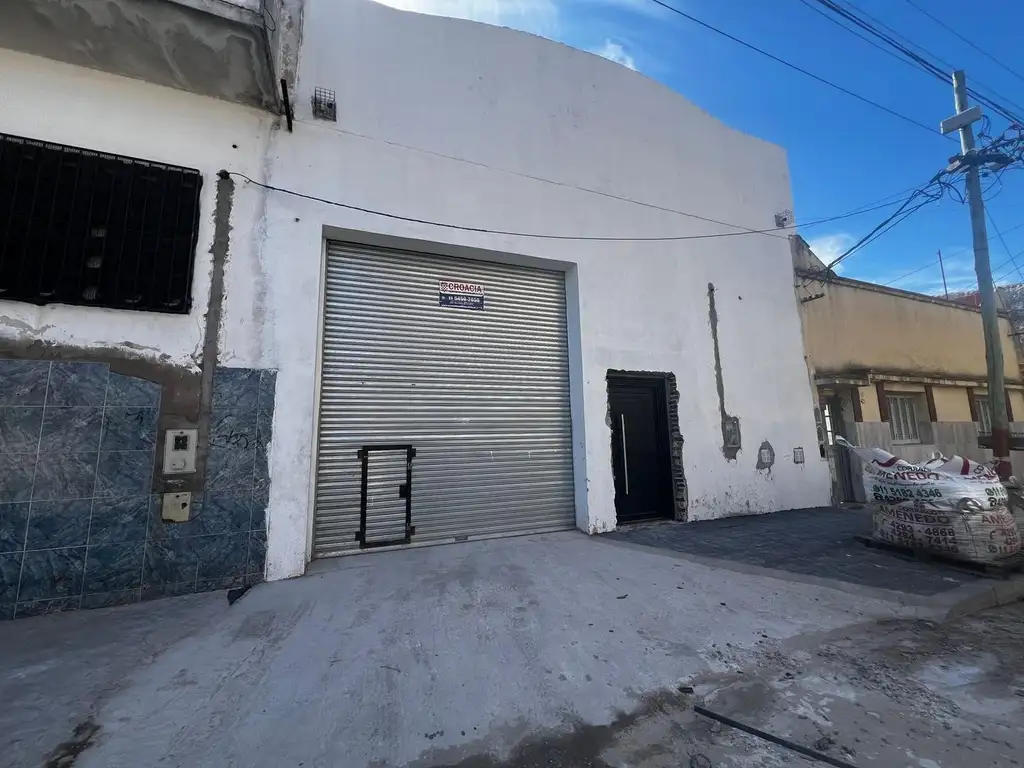 -Posee un portón de chapa de 4,08mts de ancho por 3,45mts de alto facilitando la entrada de vehículos de gran tamaño. Cortina metálica marca Croacia con control remoto