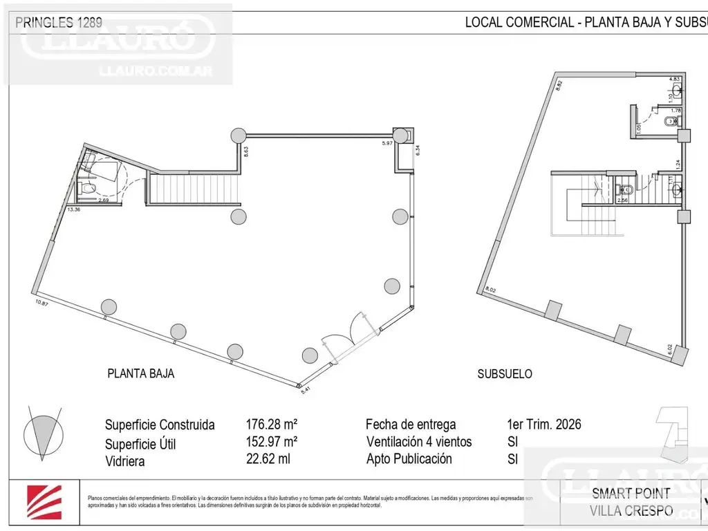 Apto gastronomía, salida a 4 vientos y varios destinos. Vidriera de 23 mts. Planta baja y SS. Baño en cada planta. Entrega aproximada primer trimestre del 2026.